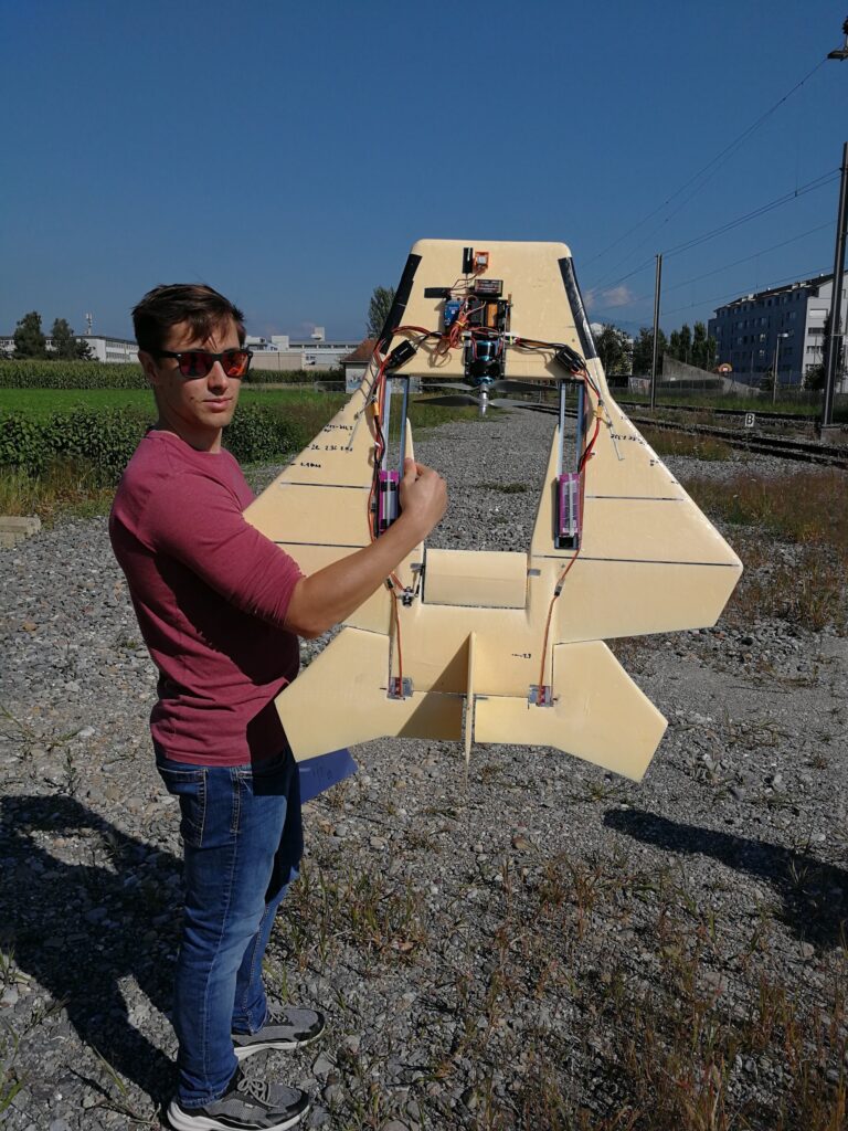 Zum Abschluss der Vortragsreihe stellte Luca Müller, ehemaliger Mitarbeiter des IWK – Fachbereich Mechanische Systeme, die Mobula vor, ein autonomes Fluggerät mit on-board Objekterkennung zur Bekämpfung von Multikoptern. Das Thema Drohnenabwehr wird immer wichtiger, da die Behinderungen des Luftverkehrs durch Drohnen in den letzten Jahren stetig gestiegen sind, so Müller. Drohnen in der Nähe der An- und Abflugschneisen von Flugzeugen können den Flugverkehr für mehrere Stunden unterbrechen. Die Anforderungen an ein Gerät zur Drohnenabwehr sind enorm hoch. Um einen Multikopter aus der Luft zu neutralisieren, braucht es vor allem eine angemessene Geschwindigkeit, Agilität und eine zuverlässige Onboard-Objekterkennung. Ein kurzes Video zeigte anschaulich, wie die Modula sich unter realen Bedingungen verhält.