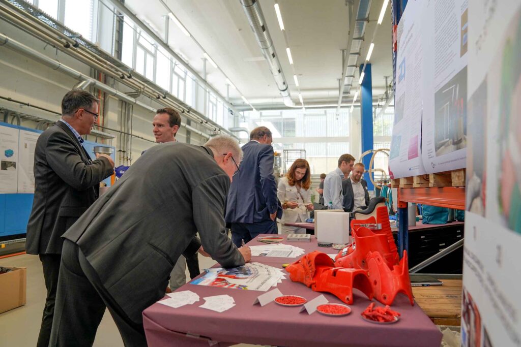 Im zweiten Teil der Veranstaltung wurden in den Laboren die neuesten Entwicklungen und Technologien der verschiedenen Fachbereiche vorgestellt. Auf drei Etagen konnten sich die Teilnehmenden des Kunststoff-Forums selbst ein Bild davon machen, dass die Pandemie zwar vieles beeinflusst hat, dem Innovationsdrang im IWK aber keinen Dämpfer verpassen konnte. Von Spritzgiessen über Faserverbundtechnik und Leichtbau bis hin zu 3D-Druck, mechanischen Systemen und Verbindungstechnik, mechanischen Prüfungen und Analytik sowie Fertigungstechnik im Metall-Bereich – an anschaulichen Prüfständen, Prototypen und Produktions-Demonstrationen inklusive vertiefenden Fachgesprächen konnte alles praxisnah erlebt werden. Ergänzend wurden Laborvorträge zu ausgewählten Themen gehalten. Die Teilnehmenden konnten sich während rund zwei Stunden ganz interessengeleitet im Techpark umsehen und auch benachbarte Institute wie beispielsweise das ILT Institut für Laborautomation und Mechatronik sowie die gut ausgestattete Werkstatt der OST ansehen. IWK-Institutsleiter Frank Ehrig kündigte an, dass das IWK künftig unter anderem mit dem ILT noch enger zusammenarbeiten will, um mit einer breiteren Vernetzung noch stärker interdisziplinäre, innovative Forschungsprojekte für die Kunden des IWK umsetzen zu können.