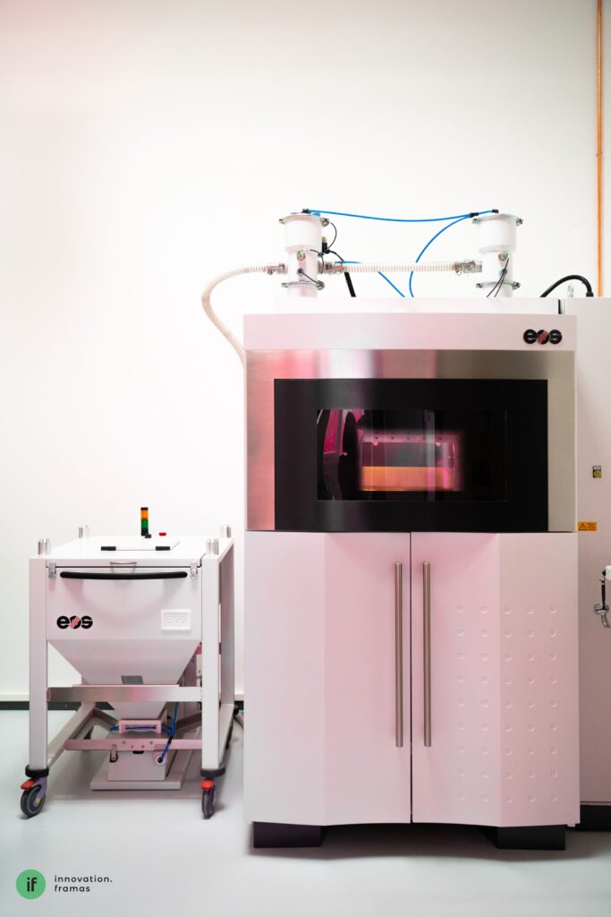 An das „EOS P 396“-System wird eine Peripherie angebunden, die das optimale Mixen des Materials für eine konstante Prozessqualität ermöglicht; dabei handelt es sich hauptsächlich um Polyamid (PA 11 und PA 12) und Thermoplastisches Polyurethan (TPU) in Pulverform. framas arbeitet bereits eng mit Maschinenherstellern und Materiallieferanten zusammen, um neue Materialien zu testen und zu evaluieren.