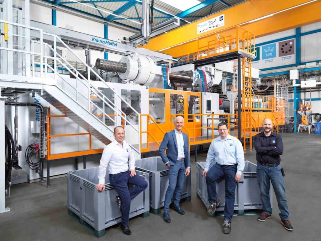 Diese spielt bei neuen Investitionen eine wichtige Rolle. Andreas Schlegel: „Wir analysieren Maschinenlieferanten hinsichtlich des technischen Standards, der Servicequalität und des Preises. Es ist für uns sehr wichtig, dass die Maschine konstant gut läuft und schnell Hilfe kommt, wenn wir doch mal ein Problem haben. Mit KraussMaffei sind wir da sehr zufrieden.“ Das ist sicher auch ein Verdienst von Bruno Schleiss, dem langjährigen Geschäftsführer von Krauss-Maffei (Schweiz) AG mit seinem Team.