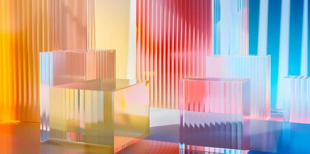 Die bunte Welt des Plexiglas’: Forschende entwickeln ein Verfahren, um diesen Kunststoff komplett in seine Bausteine zu zerlegen und diese wiederzuverwenden. (Bild: Adobe Stock/Generiert mit KI)
