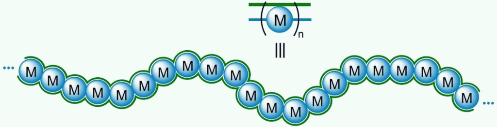 Aufgrund der verschiedenen elektronischen Strukturen von Metall- und Nichtmetallatomen ist es schwierig, die Eigenschaften von Metallen, wie hohe thermische und elektrische Leitfähigkeit, auf Polymere zu übertragen. Polymere mit Metall-Rückgrat könnten die Vorteile beider Materialgruppen kombinieren und Wege zu neuartigen funktionalen Materialien eröffnen. Das Problem sind die schwachen Bindungen zwischen den Metallatomen, die ein Polymerrückgrat nicht so stabilisieren können wie die Nichtmetallatome konventioneller Polymere. Dem Team um Guowei Wang und Huisheng Peng ist nun die Synthese eines stabilen Polymers mit einem Rückgrat aus Nickelatomen geglückt.