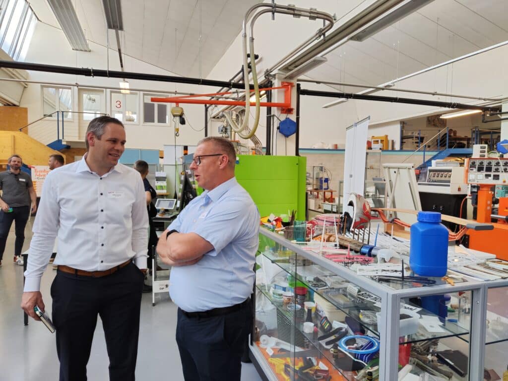 Am 1. Juni traf sich im KATZ ein breites Netzwerk aus Fachkräften, Unternehmern und Vertretern der Regierung und des Parlaments zur Feier des 30-jährigen Jubiläums. Regierungsrat Alex Hürzeler übermittelte seine Grussworte, Grossrat Dr. Adrian Schoop, Geschäftsführer der Schoop Gruppe, und Carsten Diekmann, Geschäftsführer der Georg Utz AG sprachen zu den Chancen des Produktionsstandorts Schweiz. Danach wurden an den Ausbildungsplätzen des KATZ neue Trends der Automatisierung und der Digitalisierung vorgeführt. Auf den Aufbereitungsanlagen des KATZ wurde gezeigt, wie in Zukunft aus gebrauchten Kaffeegetränk-Bechern wieder neue Kaffeegetränk-Becher hergestellt werden.
