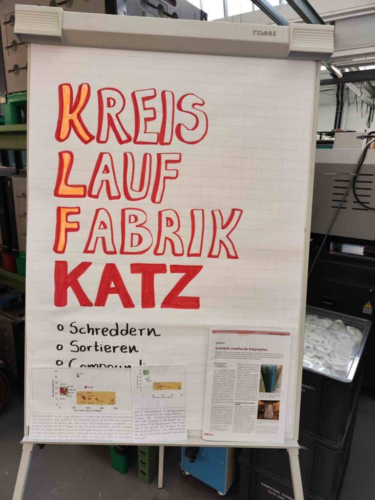 Als weiteres wichtiges Thema wurde die Kreislaufwirtschaft von Kunststoffprodukten in den Bildungsplan des KATZ aufgenommen. In diesem Bereich spielt der Technologietransfer eine wichtige Rolle. Auf den Versuchsanlagen des KATZ testen Unternehmen das Recycling ihrer Kunststoffprodukte und schaffen damit konkrete Lösungen für eine nachhaltige Kreislaufwirtschaft. Unternehmen werden dabei unterstützt, den Energiebedarf ihrer Herstellprozesse zu reduzieren und die Langlebigkeit ihrer Produkte zu verbessern.