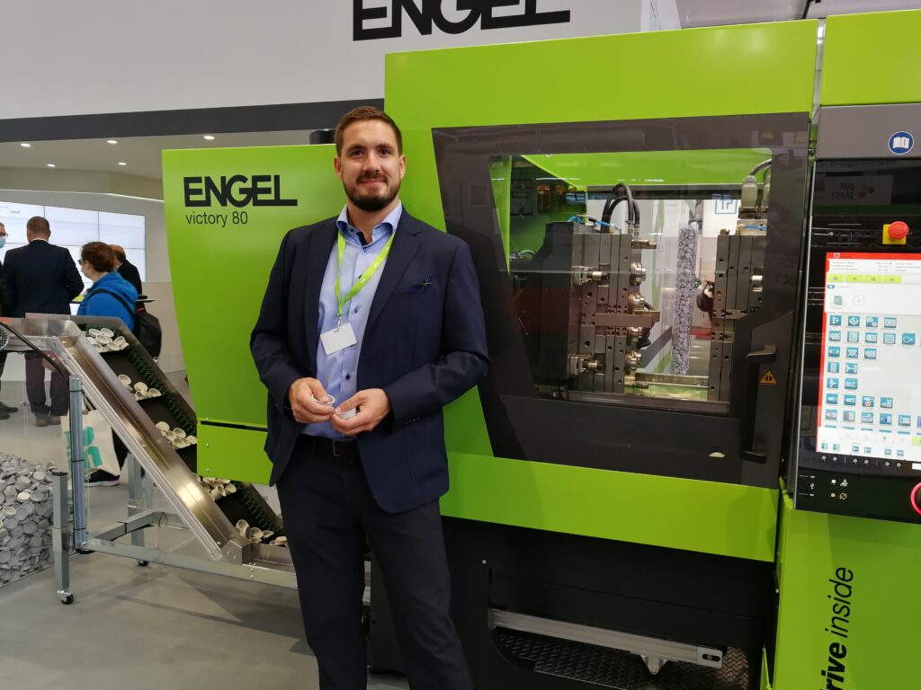 Das Thema Kreislaufwirtschaft war auch auf dem Messestand von Engel omnipräsent. Die auf einer e-speed 420/90 Spritzgiessmaschine produzierten Margarinebecher bestehen inklusive Label aus Polypropylen. Die Monomaterialverpackungen lassen sich am Ende ihrer Nutzungsdauer ebenso wie die bei der Herstellung anfallenden Produktionsabfälle schreddern und das erhaltene Rohmaterial zu neuen Produkten verarbeiten. Wie dies in der Praxis aussehen kann, demonstrierte Engel auf seinem Messestand mit der Verarbeitung von Label-Verschnittabfällen. Auf einer Engel victory 460/80 wurden in einem 8-fach-Werkzeug Kegelverschlüsse produziert. «Mit dieser Anwendung zeigen wir, dass Wiederverwertbarkeit und Kreislaufwirtschaft wirklich funktionieren können», erklärt Marcel Bachmann von Engel Schweiz AG.