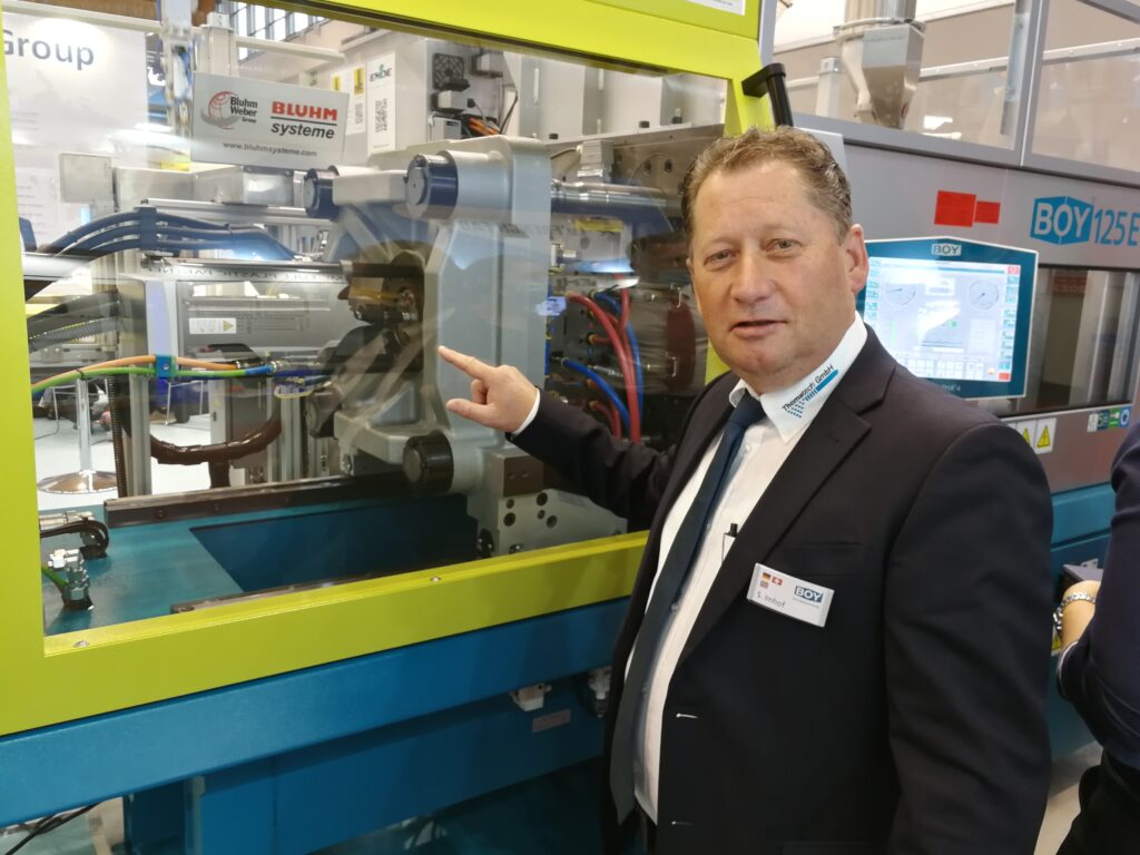 Dr. Boy stellte unter anderem einen elektromechanischer Auswerfer mit einer vom Hauptantrieb des Spritzgiessautomaten unabhängigen Funktionsweise vor. «Der Auswerfer war bis anhin hydraulisch. Der elektromechanische Auswerfer steht für hohe Dynamik sowie exakte Wegpositionierung mit Synchronisierung von Auswerfer- und Handlingbewegung», erklärt Stefan Imhof von Thomatech, der Boy-Vertretung für die Schweiz. Der Auswerfer ist für Maschinen von 50 bis 125 t als Option erhältlich.