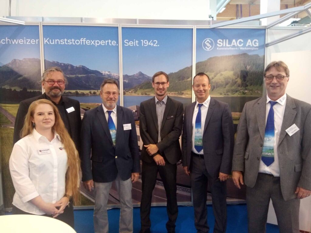 Büchler Reinli+Spitzli, CEO Andreas Scherrer (l.) mit Kunden und Lieferanten Das ThyssenKrupp Materials-Team war für die Kunden da. SKZ, Matthias Ruff, Leiter Vertrieb, und Sandra Leuckert, Projektmanagerin Das aufgestellte units-Team (v.l.): Remo Roth, Paul Ackermann, Roger und Angela Eggenberger, Christian Widmer, Andreas Heinzle IWK-Team (v.l.): Manuel Suarez, Luzia Rhyner, Corsin Stocker Jürg Weibel und Barry de Groot, Granula. Hansjoachim Meissner und Antonio Settegrana von Rinco Ultrasonics Auch ProByLas war vertreten, unter anderem mit Ulrich Gubler Robert Nechvatall, Tool-Temp Fabian Gadient, Resinex Switzerland AG Schweizer Gemeinschaftsstand (v.l.): Samantha Ward und Martin Rudolph von svismold, Jürg Steiner von Silac, Nicolas Tresch von A. & J. Stöckli sowie Peter Birchler und Peter Meier von Silac. Michael Steiner, Lilian Steiner und Valerie Steiner, SKS AG. Sandra Dierks, K.D. Feddersen und Stan Haftka, Bio-Fed Tanja Grimm, Fanuc Mark Hellweg, CEO der Hellweg Maschinenbau GmbH, präsentiert mit Stolz die Grossschneidmühle MDSi 600/300 mit der neuen digitalen Smart-Control-Steuerung. Für einen gut besuchten Stand sorgte u.a. smart Control, das Assistenzsystem von Ewikon zur Digitalisierung in der Spritzgiessfertigung. Michael Randel (l.) von ‘Die Sparschweine’ und Werner Bernard von E. Ramseier Werkzeugnormalien Maag Pump Systems AG, Iris Fischer, Marketing Manager Markus Scheuber, Head of Sales Plastic Welding, Telsonic AG gwk tritt neu unter dem Namen technotrans auf. Anstelle des orangefarbenen Markenzeichens sind die Geräte nun in blau und anthrazit gehalten. Ein aufgestelltes Team um Jan Meik Menke, Geschäftsführer der Color Technik AG, sorgte für einen coolen Genuss. Die Brüder Manuel und Martin Wipf von der Aareplast AG zeigten ihre Kompetenzen. ProTec Polymer Processing: Thomas Dubler, Dr. Brehm, vor dem stationären Somos Granulattrockner RDF