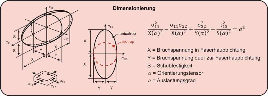 Bild 4: Berücksichtigung der richtungsabhängigen Materialeigenschaften durch die Wahl der Tsai-Hill Festigkeitshypothese. [2]