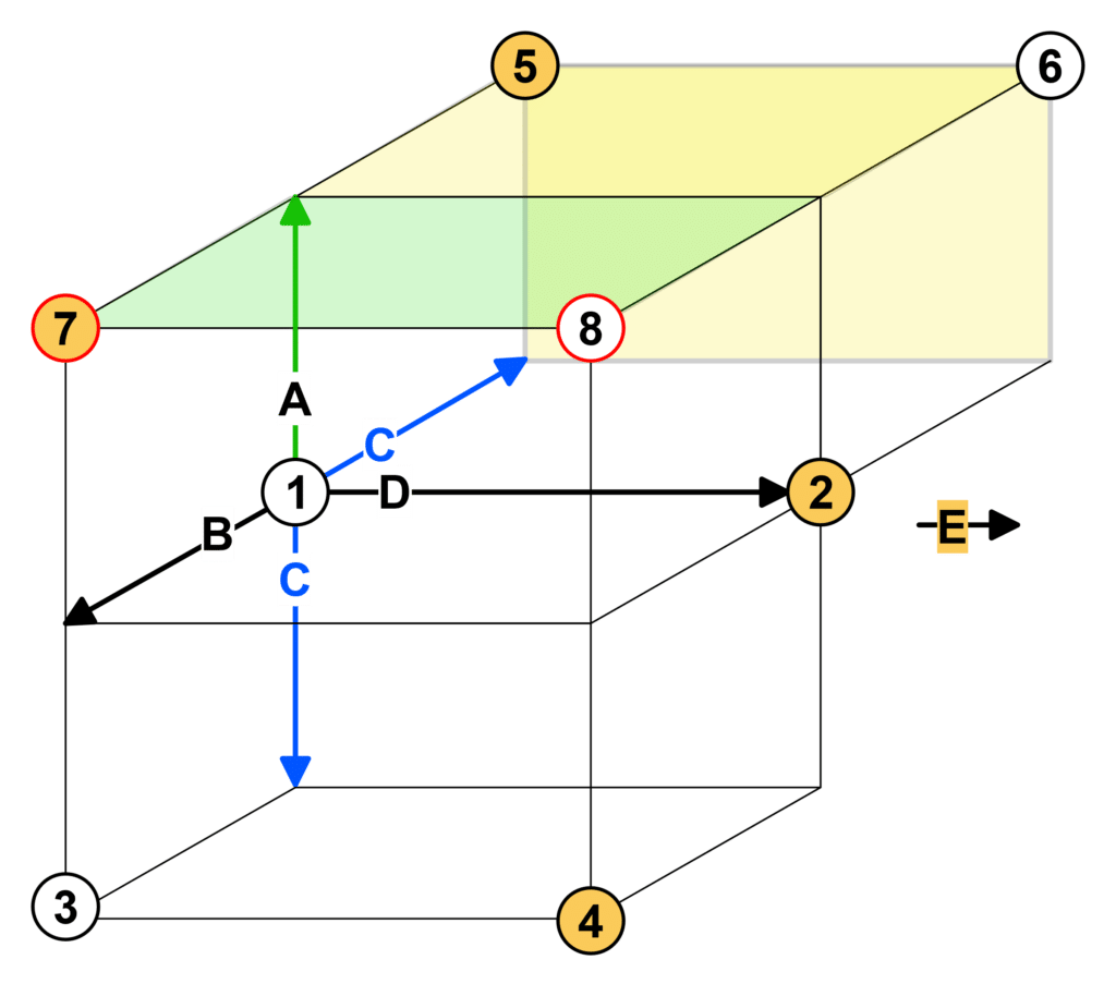 In Übereinstimmung mit den Auswertungen der statistischen Versuchsplanung, haben die Parameter A und B den grössten Einfluss, was in der orthogonalen Parameterdarstellung in Abbildung 3 visualisiert ist. Diese Form der Validierung ist im gewählten kompakten Versuchsplan möglich und veranschaulicht die Methode der statistischen Versuchsplanung.