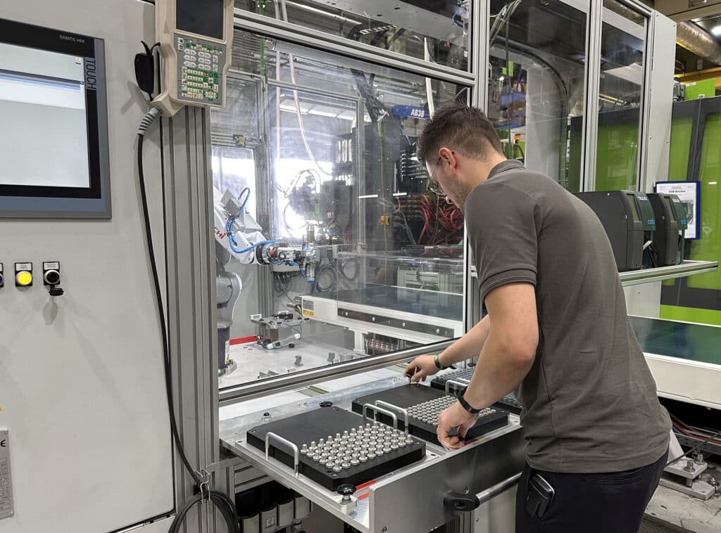 Während der Vorserie werden die Einlegeteile noch manuell zugeführt.