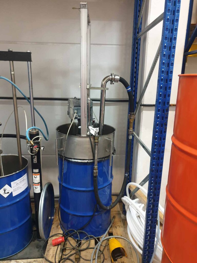 Einen weiteren Vorteil beschreibt Köhl, Leiter Produktion und Lager bei R&G: „Die Pumpen lassen sich sehr leicht zerlegen, da keine Dichtungen beim Ausbau das Ziehen von Exzenterschnecke oder Antriebswelle behindern. Eine Reinigung ist aber nur sehr selten notwendig, da wir pro Produkt eine Pumpe verwenden, die dann einfach von Fass zu Fass umgesetzt wird (Bild 2). Das hat sich bewährt, da durch die Bauform keine versteckten oder unzugänglichen Ablagerungen möglich sind, die den Betrieb beeinträchtigen könnten. An Störungen im Betrieb kann ich mich nicht erinnern, lediglich Dichtungen wie O-Ringe und Flachdichtungen oder Schlauchschellen an den Verbindungsstellen wurden bis jetzt da und dort turnusmäßig ersetzt. Und auch während der Coronabeschränkungen letztes Jahr konnten wir ein Ersatzteil mit Hilfe der sehr guten technischen Unterstützung des Herstellers vorbeugend selbst einbauen und so den Betrieb ohne Unterbrechung fortführen.“