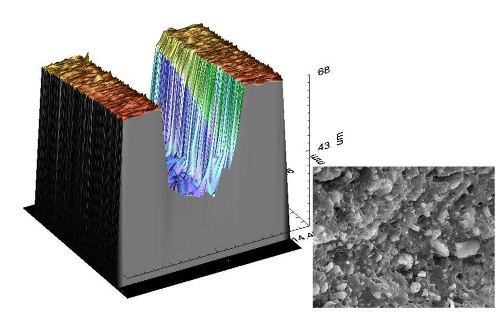 Dieser wird in Form des Gewichtsverlusts der Plättchen quantifiziert. Bei nicht signifikantem Gewichtsverlust können mittels bildgebender Methoden (wie optische Mikroskopie oder Weisslichttopografie) anhand des Verschleissbilds vergleichende Aussagen gewonnen werden. Parallel zu den Verschleissuntersuchungen werden die Compounds hinsichtlich ihrer Verarbeitbarkeit rheologisch charakterisiert und mit Blick auf ihre praktische Anwendung mechanischen Standardtests unterzogen.