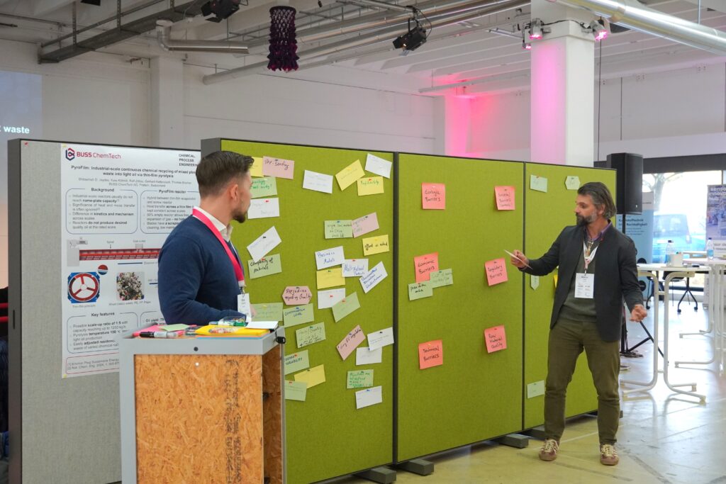 Die Fachvorträge deckten das gesamte Technologiespektrum ab: Irina Yarulina (Sulzer Chemtech) betonte, dass die Auswahl der passenden Technologie stets von der Abfallzusammensetzung und von der Wertschöpfungskette abhängt – eine einzelne „Gewinner-Technologie“ existiert dabei nicht. Thomas Blocher (BUSS ChemTech AG) präsentierte die PyroFilm-Technologie, mit der gemischte Kunststoffabfälle kontinuierlich zu Leichtöl recycelt werden. Dr. Pelin Uran (DePoly) stellte die photokatalytische Hydrolyse vor, die auch unsortiertes PET in hochreines Neumaterial umwandelt. Ralf Schwarz (Pyrum Innovations) gab Einblicke in die Pyrolyse von Altreifen zu Rohöl und recyceltem Carbon Black.