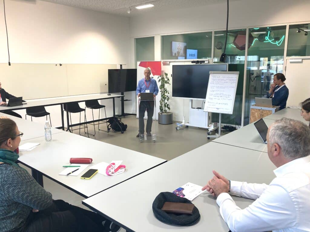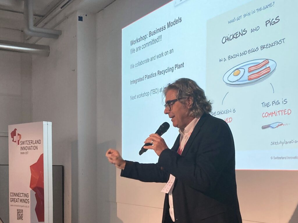 Ruedi Wagner (Switzerland Innovation Park Ost) bei der Präsentation der Ergebnisse aus dem Workshop über Geschäftsmodelle.