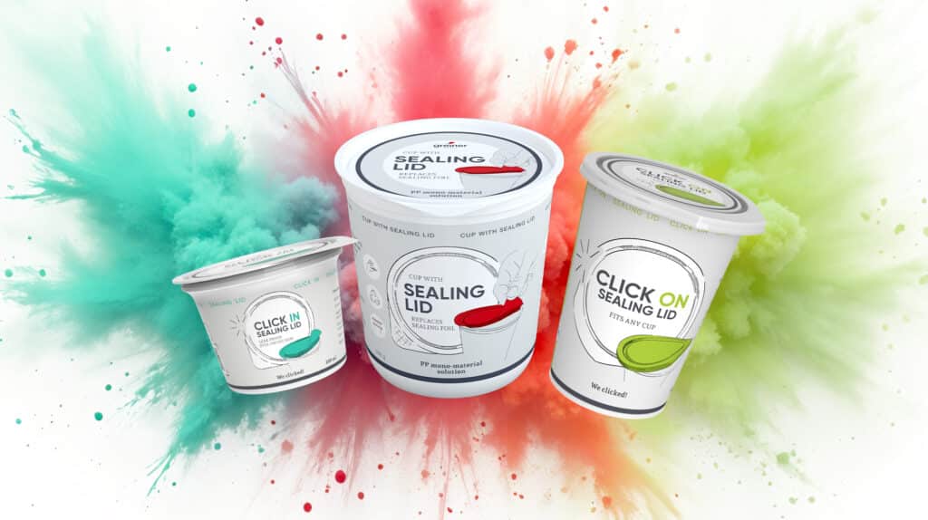 Greiner Packaging bringt mit Click On & Click In zwei neue Siegeldeckel auf den Markt, die nicht nur Verpackungsprozesse vereinfachen, sondern neue Massstäbe in Sachen Recycling und CO₂-Einsparung setzen. Denn, anders als bei herkömmlichen Bechern mit Siegelplatinen, die getrennt entsorgt werden müssen, wird beim Siegeldeckel auf eine dritte Komponente verzichtet.