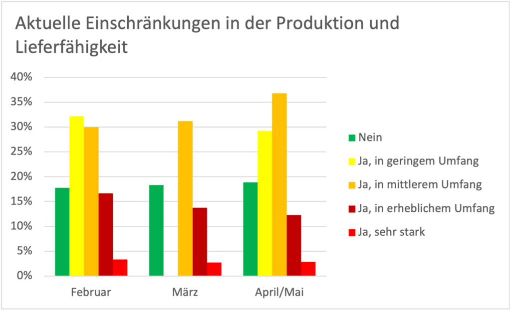 Hinzukommt, dass der Einbruch des Welthandels zu Beginn der Covid-19-Pandemie und die im 4. Quartal 2020 sprunghaft wieder angestiegene Nachfrage zu teils chaotischen Situationen im Frachtge-schäft geführt haben: Vielfach fehlt es an Containern, die infolge der Pandemie in den falschen Häfen gestrandet sind. Das knappe Angebot und die starke Nachfrage nach Frachtkapazitäten haben beispielsweise die Containerpreise auf der Strecke Asien-Europa seit Ende 2020 um mehr als 400 % ansteigen lassen. Importe von Rohstoffen oder Rohrsystemen können die Produktionsausfälle in Europa nicht ausgleichen.