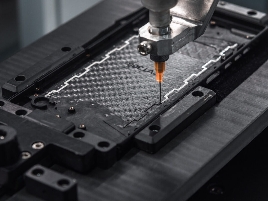 Um die Gerätekonnektivität weiter zu verbessern, ist eine spezielle 3D-Bedruckung aus leitfähiger Tinte in die Carbonfaserstruktur integriert.