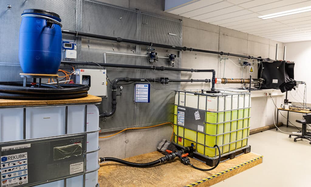 Um die Wirksamkeit der statischen Mischer im Kühlkanal zu evaluieren, entstand im Labor für Strömungslehre am Campus Gummersbach ein Prüfstand. Dort wurden strömungsmechanische Zielparameter wie das Mischverhalten und induzierte Druckverluste untersucht.