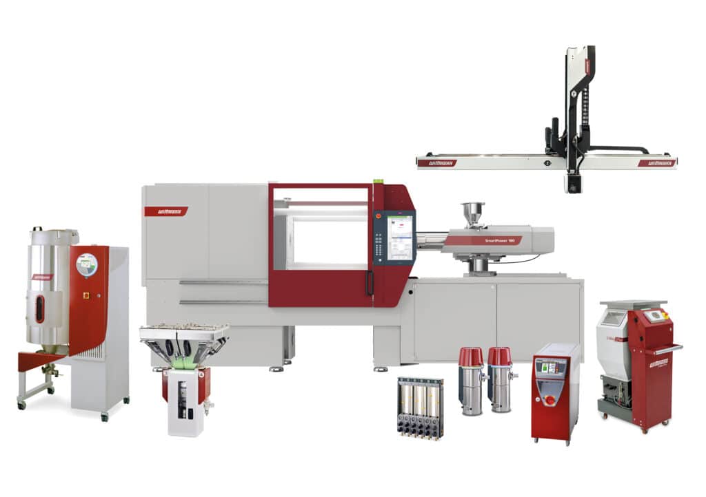 Der Streifzug durch das Maschinenspektrum der Gruppe umfasst elektrische Maschinen der EcoPower und MicroPower Reihe, darunter die mit Gleichstrom betriebene EcoPower DC Maschine mit ebenfalls mit Gleichstrom betriebenem Roboter und Temperiergerät, als auch ein Modell der servohydraulischen SmartPower Reihe, anhand dessen die Zukunftstechnologie „Holoverse“ – eine Studie zu intuitiven Interaktionsmöglichkeiten mit Spritzgiessmaschine, Roboter und Peripheriegeräten – demonstriert wird. Eine weitere Maschine der SmartPower Reihe ist mit einer komplexen Automatisierungsanlage von Wittmann Battenfeld Deutschland ausgerüstet.